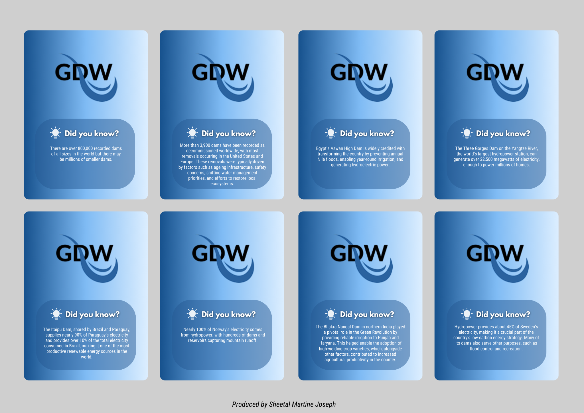 Created branded video template for weekly Dams in the News round-ups and produced videos with them, supporting consistent visual identity and content delivery.