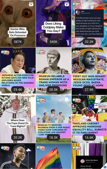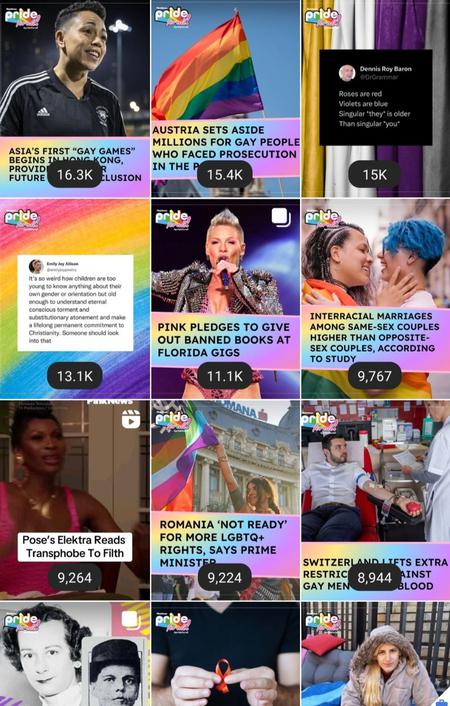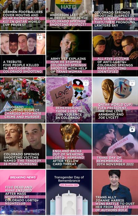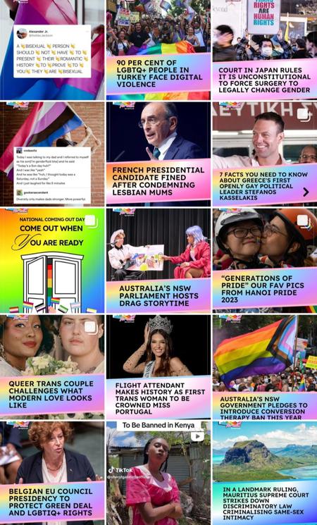 With my project to pitch and rebrand one of PinkNews' Instagram accounts (PN Pride for All), I helped expand the global LGBTQ+ news coverage at the media organisation beyond a UK/US-centric lens. I not only compiled the global news trends for the editorial team daily but also delivered original global LGBTQ+ content in the form of social media posts, carousels, articles, and news videos.